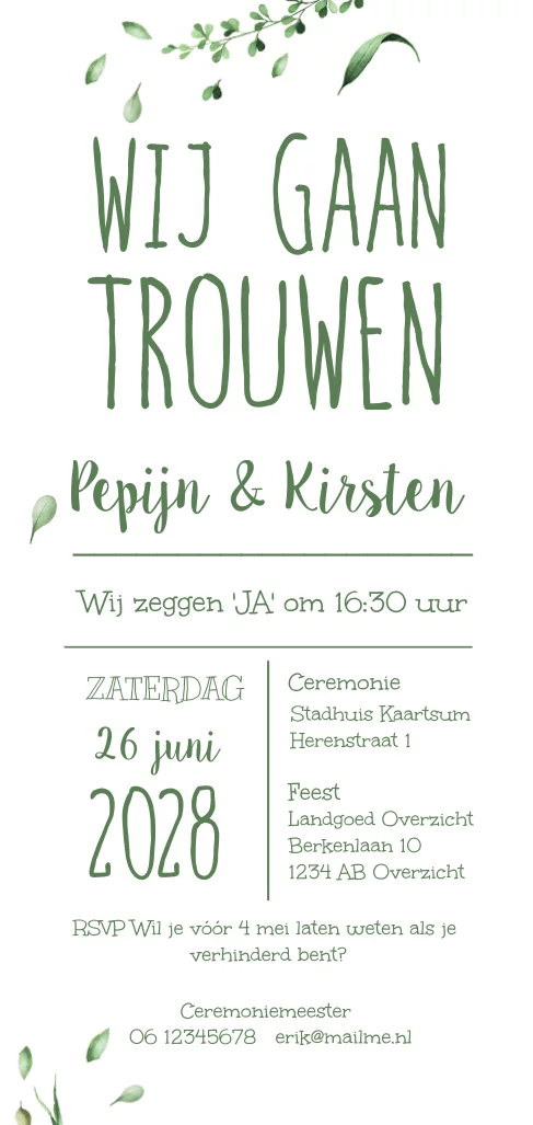 Botanische trouwkaart fijne blaadjes grafisch zelf maken