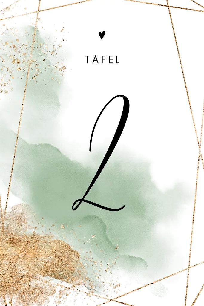 Industrieel tafelnummer kaart aquarel groen en goudlook