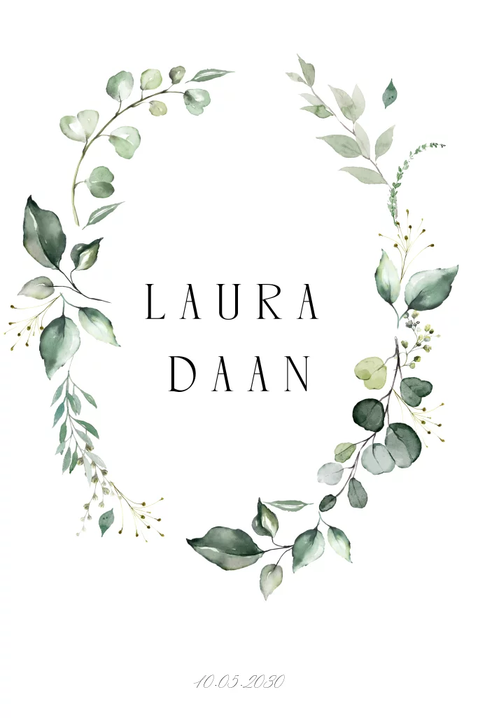 Trouwkaart met botanische elementen en goudfolie. (999999)