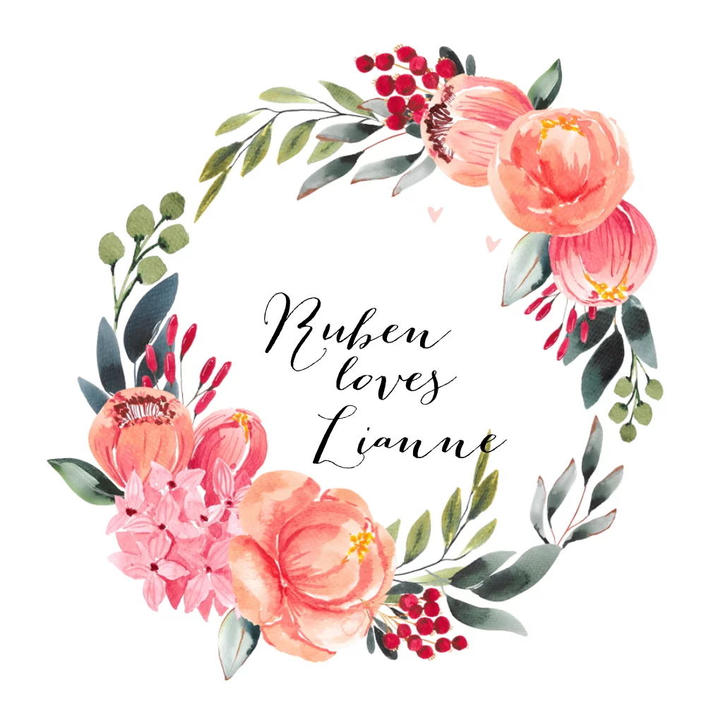 Stijlvolle en romantische trouwkaart met aquarel gekleurde bloemen in roze, oranje en groene kleuren. Zelf maken!