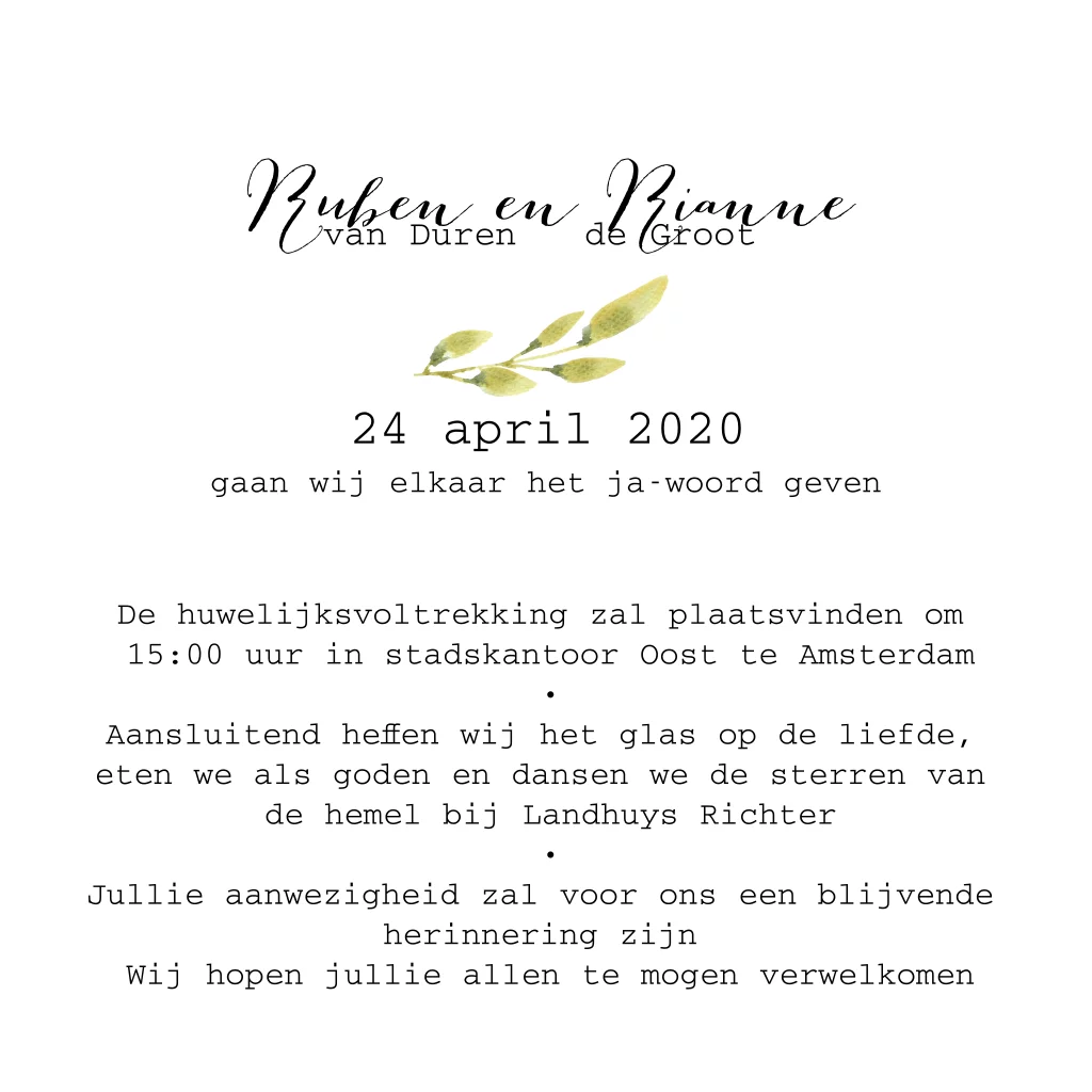 Floral chic trouwkaart met prachtige watercolour bloemen