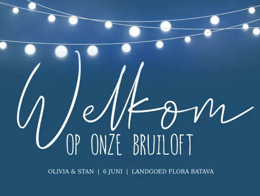 Verwelkom jullie gasten met een persoonlijk welkomstbord. Pas gemakkelijk het design zelf aan en ga aan de slag met onze editor. Voeg bijvoorbeeld elementen zelf toe of verwijder details, die jij minder mooi vindt. Wist je dat je met een ander lettertype bijvoorbeeld een hele andere look kan creëren? Specificaties: • Formaat: 60 x 80 cm • Materiaal: forex 5 mm dik • Weersbestendig