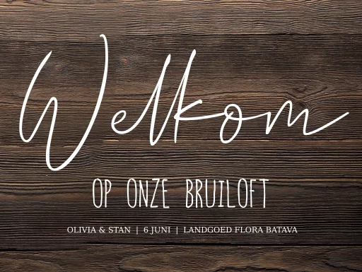 Verwelkom jullie gasten met een persoonlijk welkomstbord. Pas gemakkelijk het design zelf aan en ga aan de slag met onze editor. Voeg bijvoorbeeld elementen zelf toe of verwijder details, die jij minder mooi vindt. Wist je dat je met een ander lettertype bijvoorbeeld een hele andere look kan creëren? Specificaties: • Formaat: 60 x 80 cm • Materiaal: forex 5 mm dik • Weersbestendig