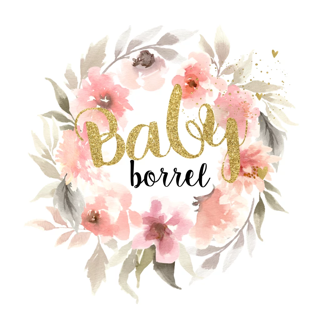 Hip en zomers kraamfeest kaartje voor een meisje? Met prachtige watercolor bloemen in pastel roze en groene tinten. Met goud look accent. Alles staat los op dit kaartje en is aan te passen!