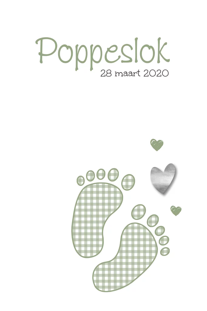 Staand clean uitnodiging poppeslok met voetjes in traditionele ruit en zilver kleur hartje (geen echt zilver). Op de achterzijde lijntjes voor tekstverdeling. Alles staat los en is te bewerken.
