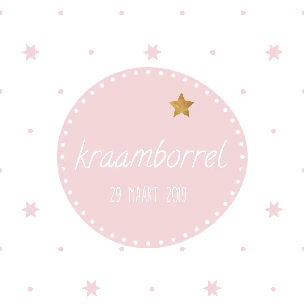 Rustig kraamkaartje voor een meisje met rond vlak, sterren patroon en koper kleurige ster. Alles staat los op dit kaartje en is aan te passen!