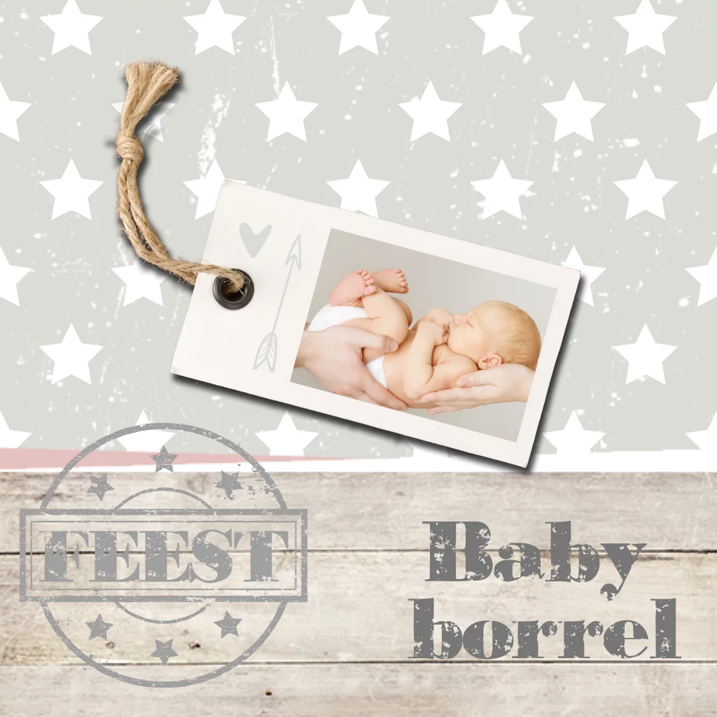 Hip foto kraamfeest kaartje hout, ster patroon en stempel