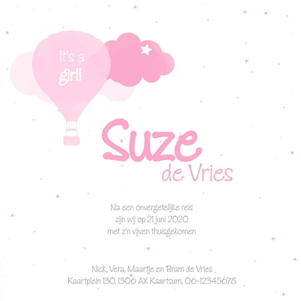 Lief adoptiekaartje olifantje en luchtballon