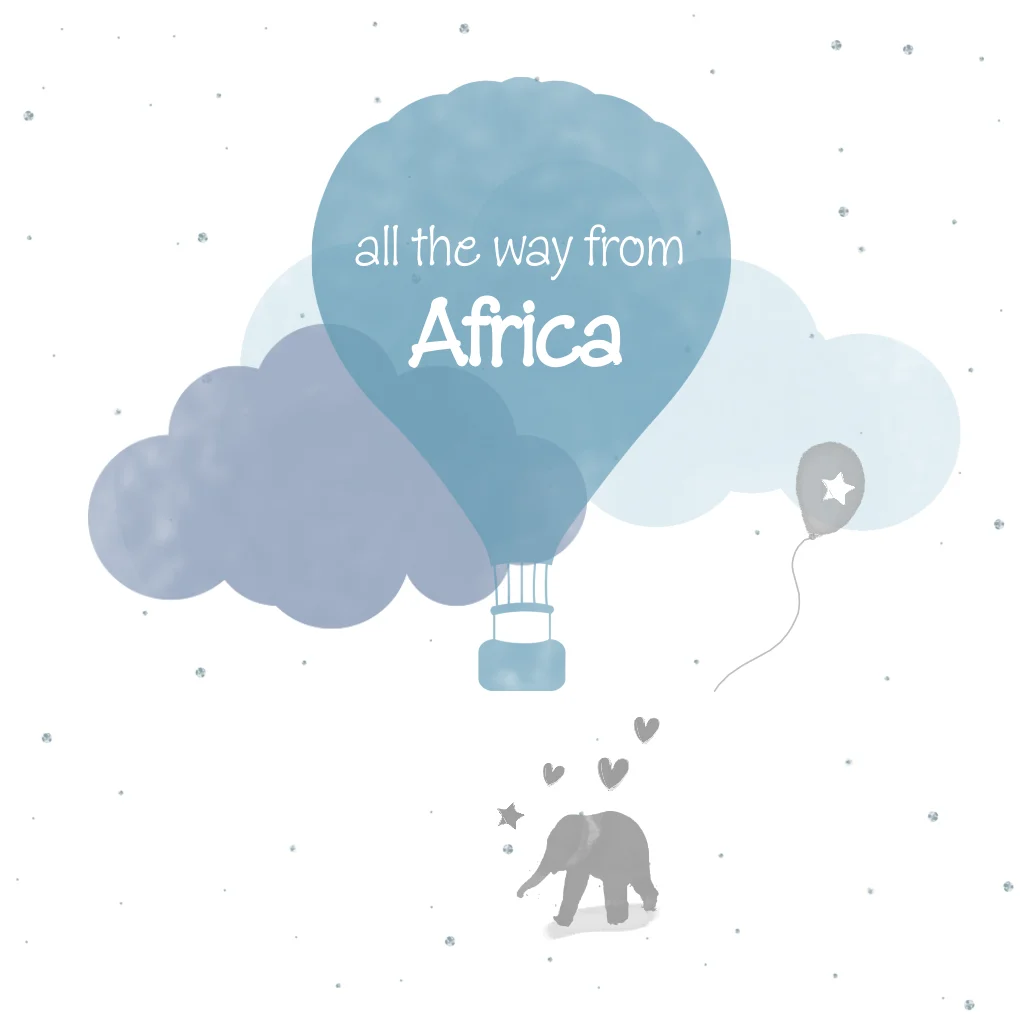 Vrolijk adoptiekaartje met lief olifantje en luchtballon