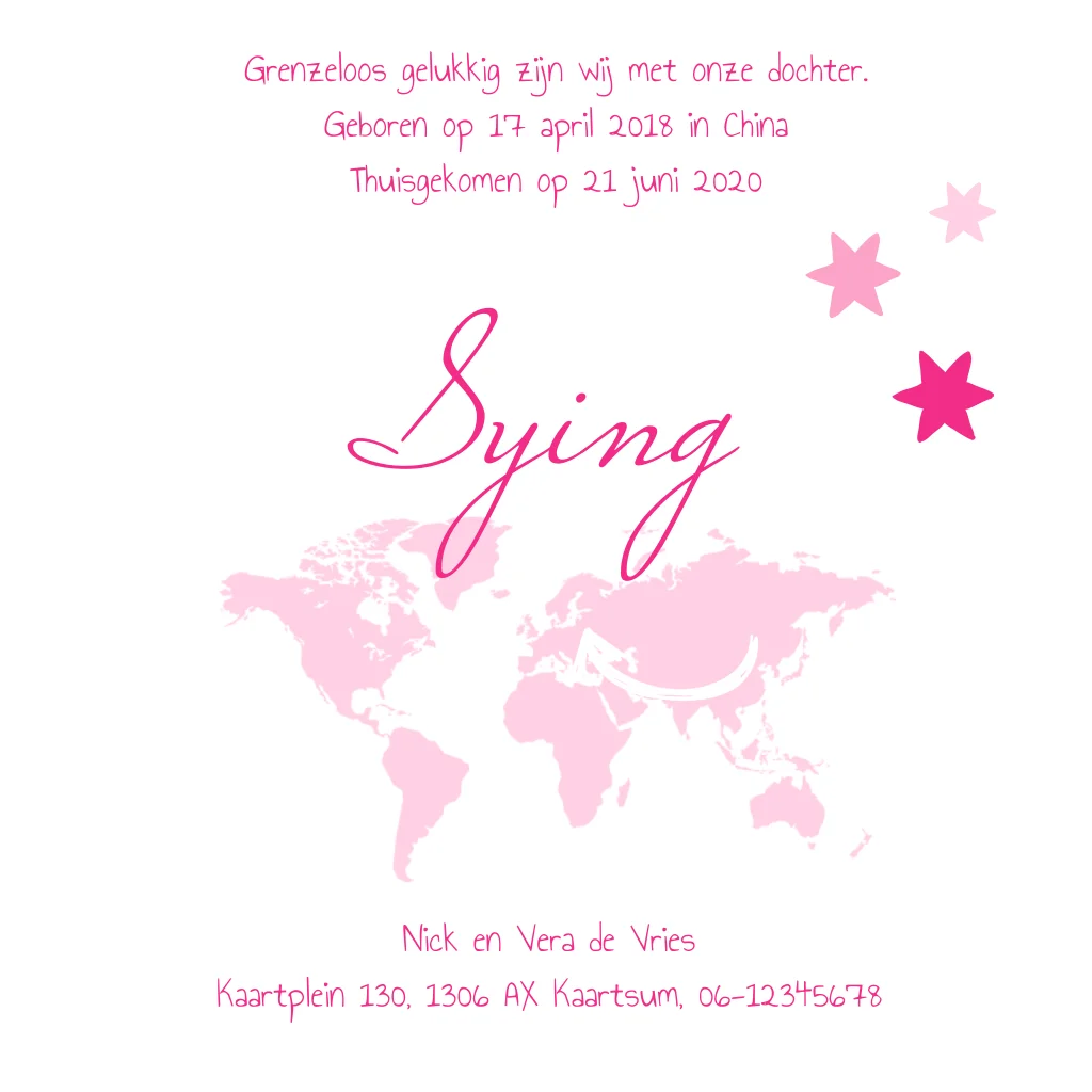 Simpel adoptiekaartje meisje met speelse sterretjes