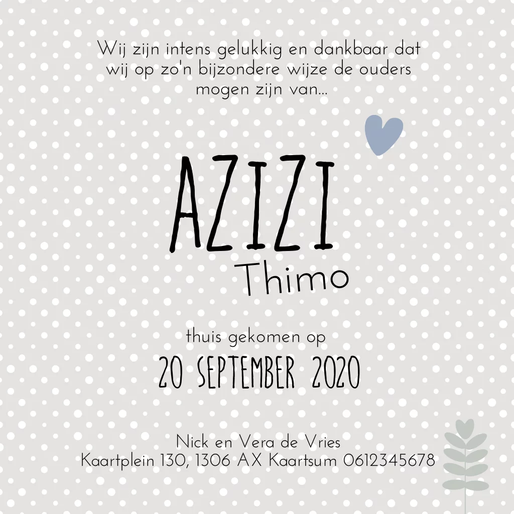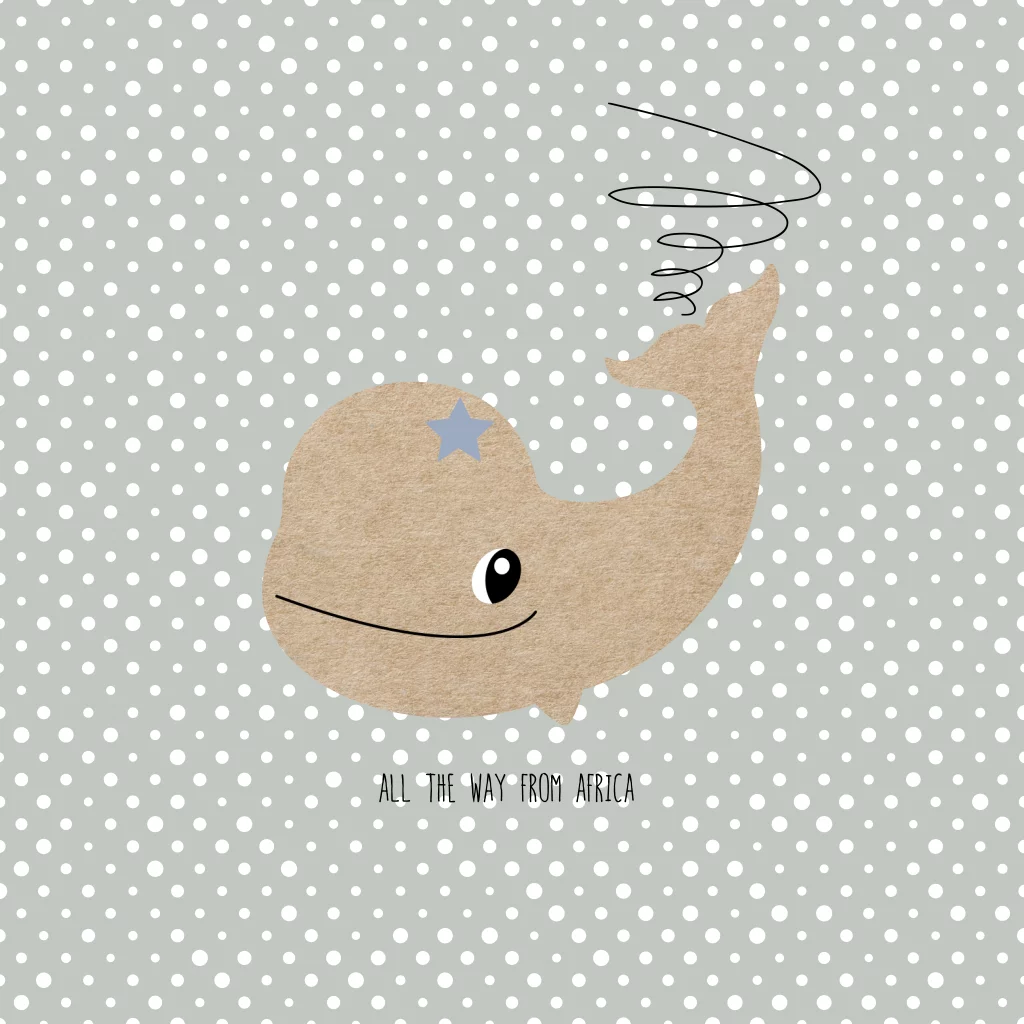 Hip aankomstkaartje voor adoptiekindje in grijs tinten met dots en walvis prentje. Alles staat los op dit kaartje en is aan te passen!