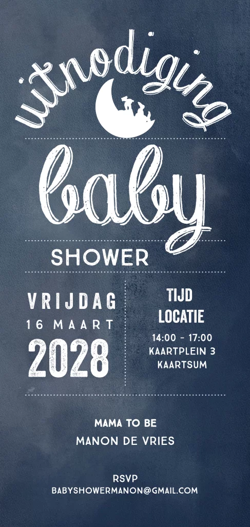 Stoer staande babyshowerkaart donker blauw