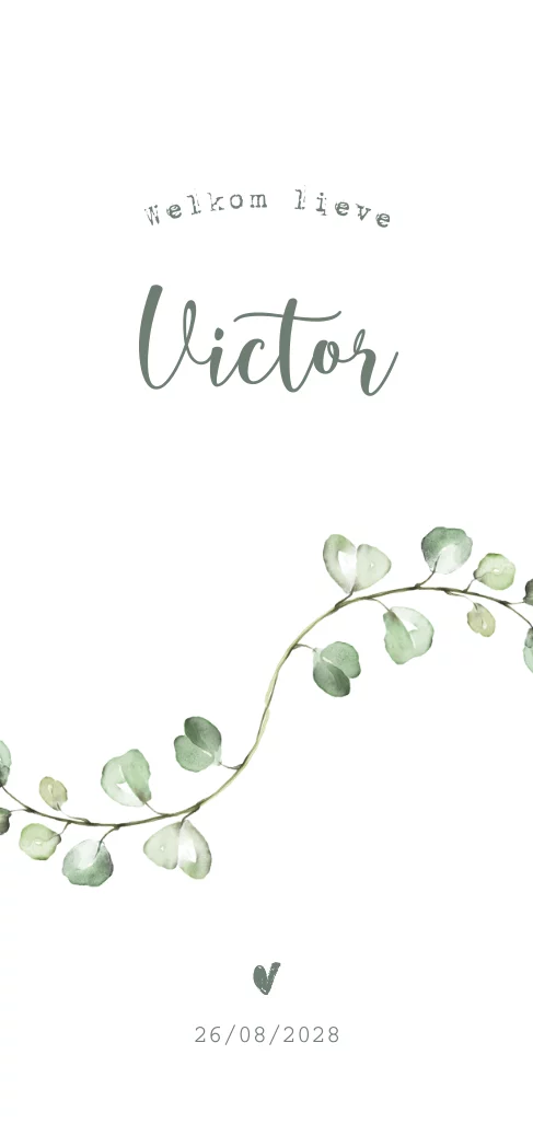 Prachtig botanisch langwerpig geboortekaartje voor een jongen! Met eucalyptus takjes. Zelf maken.