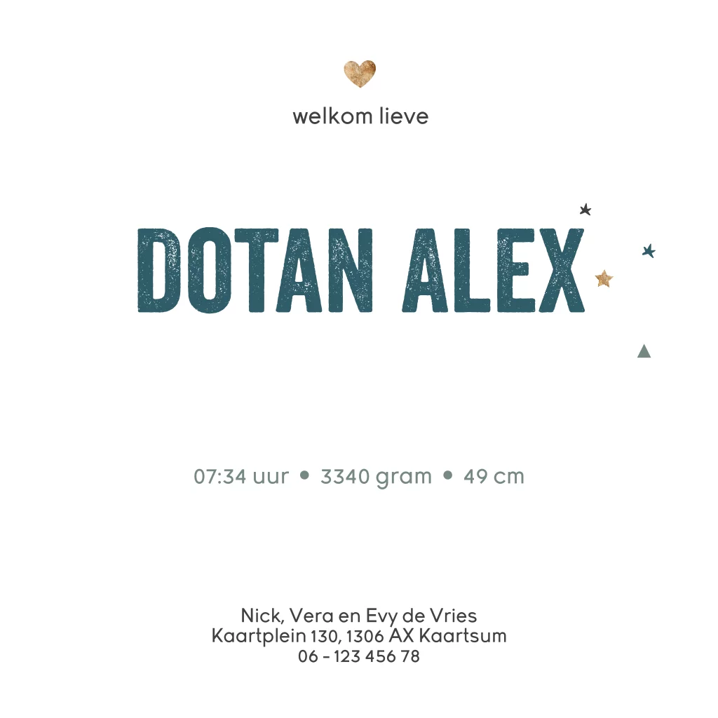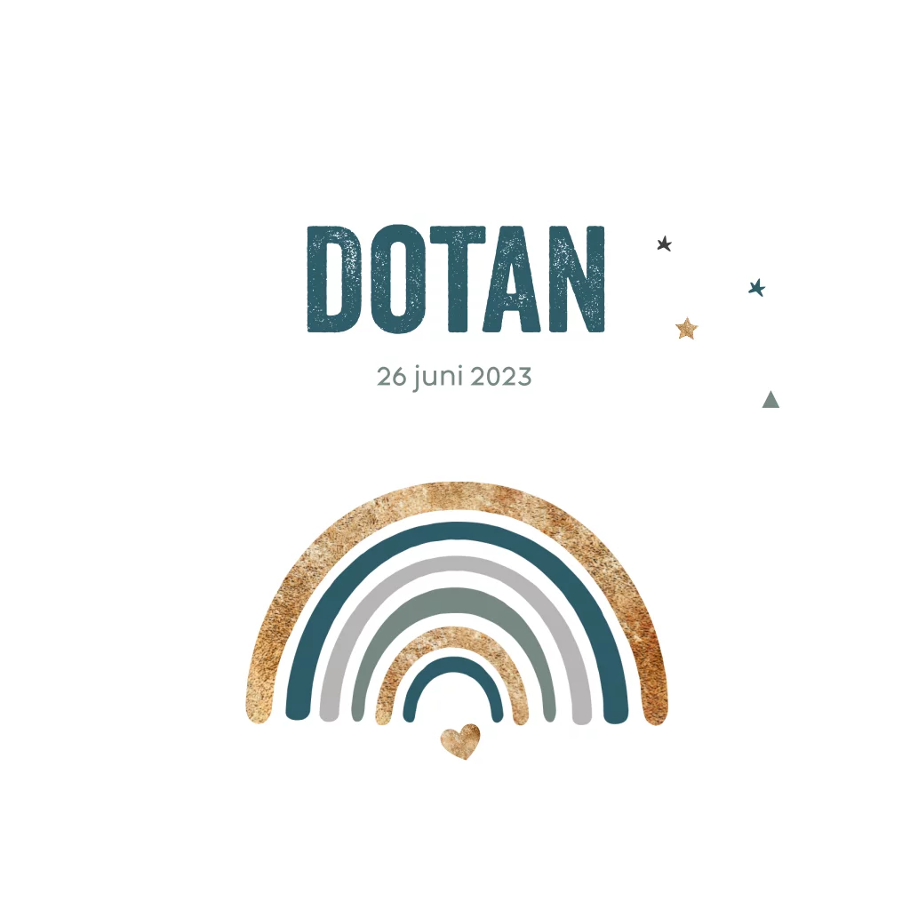 Modern geboortekaartje voor een jongen. Rustige opzet met prachtige regenboog in warme trendy tinten. Alles is zelf te bewerken.