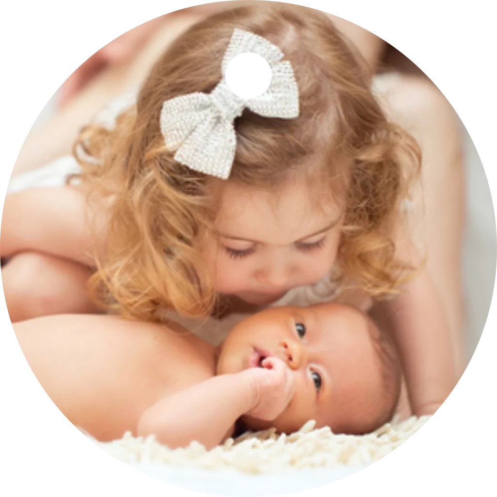 Los labeltje voor aan. je geboortekaartje? Vertaal het ontwerp door naar deze prachtige labels en laat alles met elkaar matchen. Bewerk de ronde labeltjes met boorgaatje gemakkelijk in de editor.