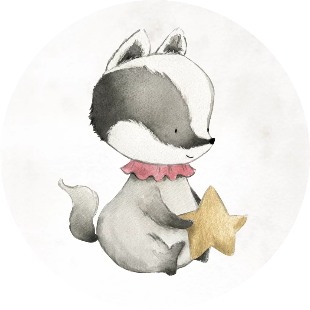 Sluitzegel met lief prentje van stinkdiertje en ster. Uit de serie dromerig circus. Zelf klevend voor envelop.