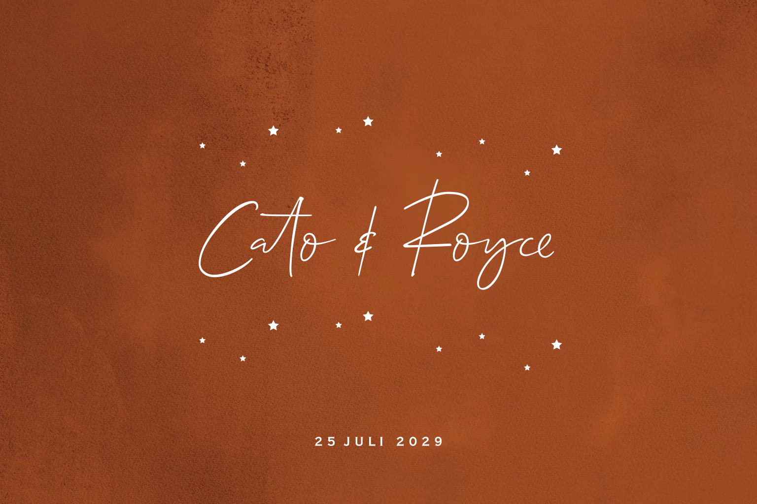 Prachtig geboortekaartje voor een tweeling unisex. Met cognac kleur velvet look en fijne sterretjes. Aan alle zijdes foliedruk. Zelf te maken.