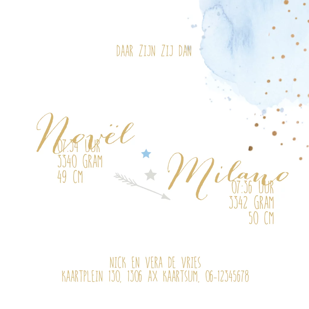 Lief geboortekaartje jongens tweeling watercolour en goud