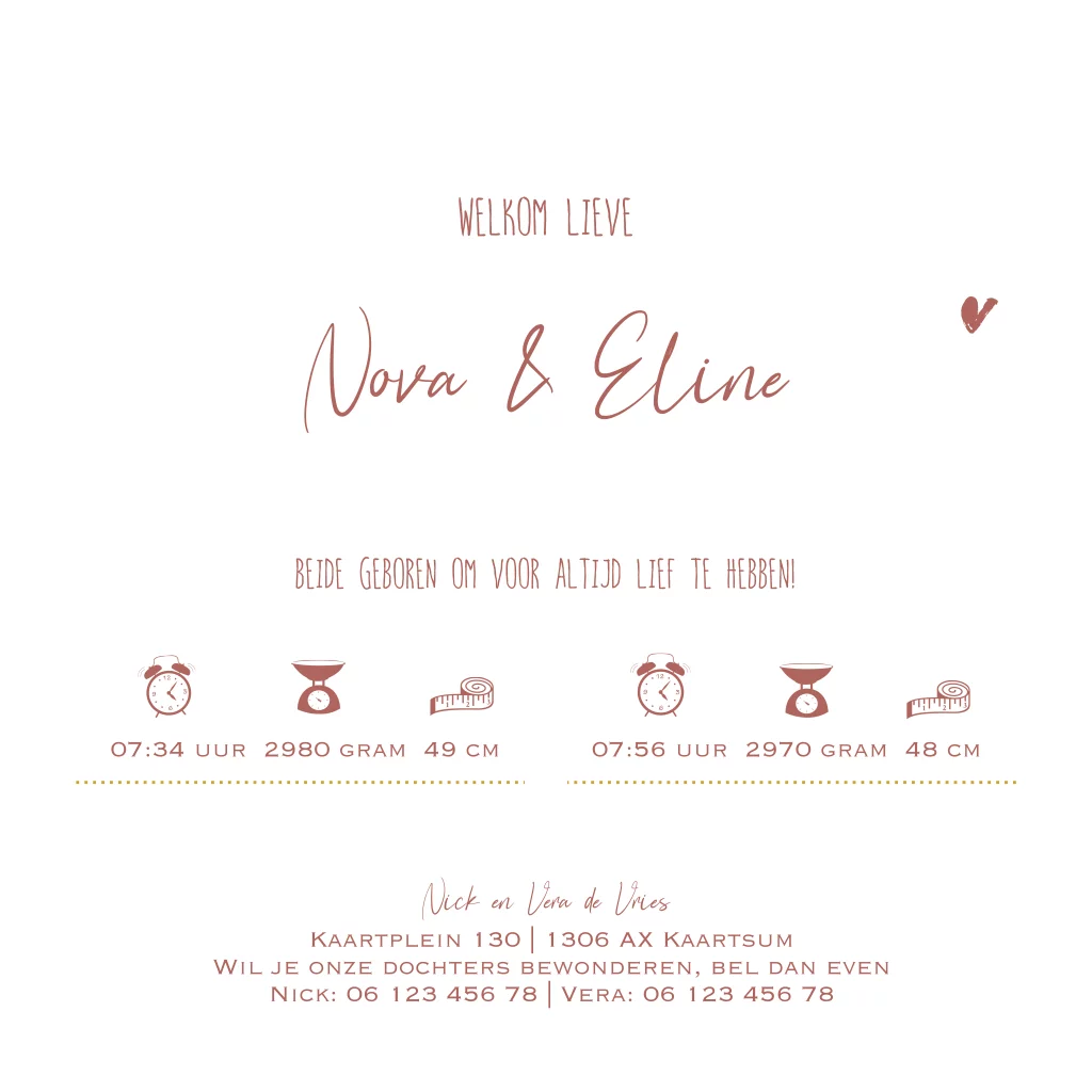 Super sweet geboortekaartje met goudfolie design? Voor een tweeling meisjes met mooie donker roze ondergrond, goudfolie hartjes, ladder van hout en losse tekst! Alles is aan te passen!