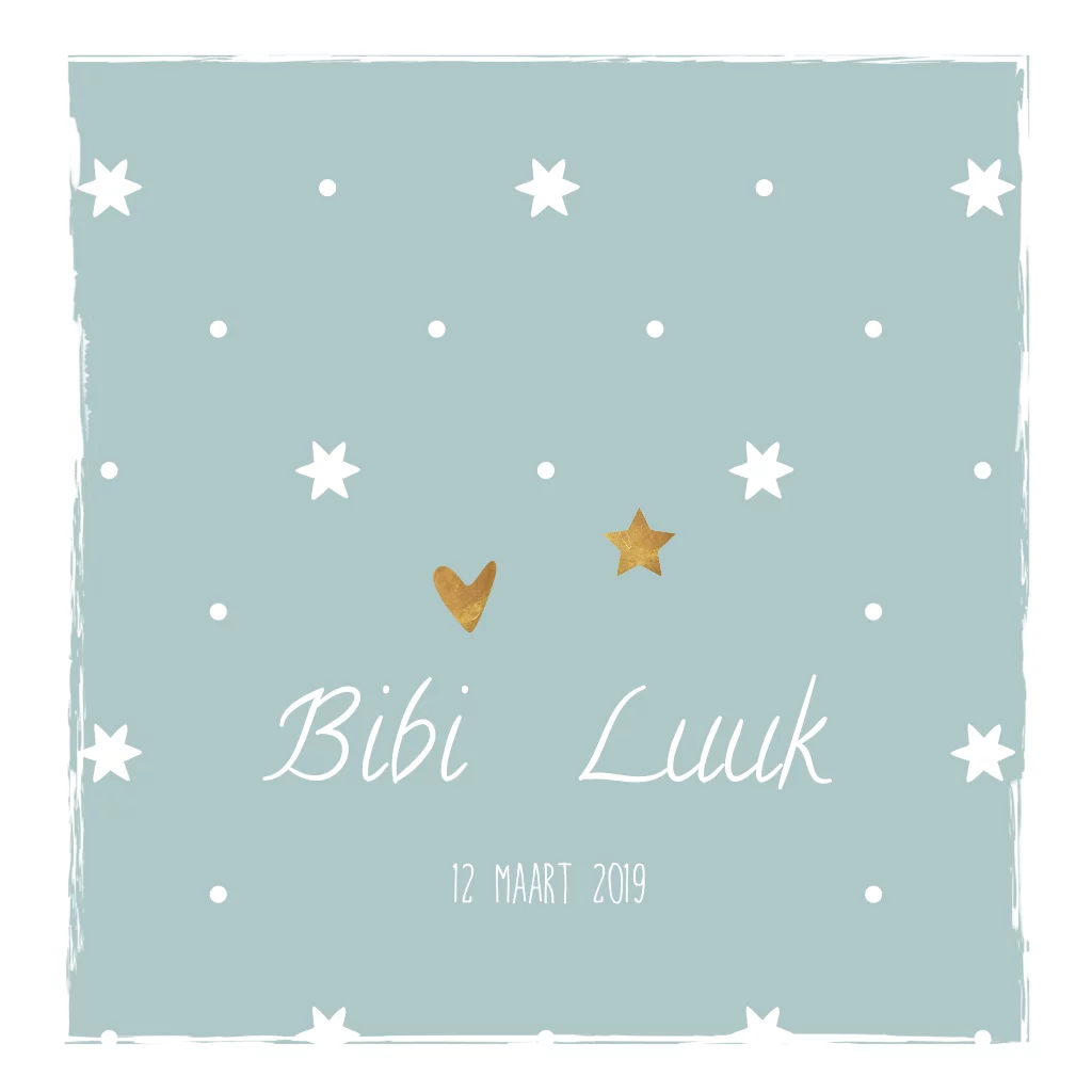 Lief mint groen geboortekaartje voor een tweeling broer en zus? Met sterren patroon en koper kleurige sterretjes en hartjes. Alles staat los op dit kaartje en is aan te passen!
