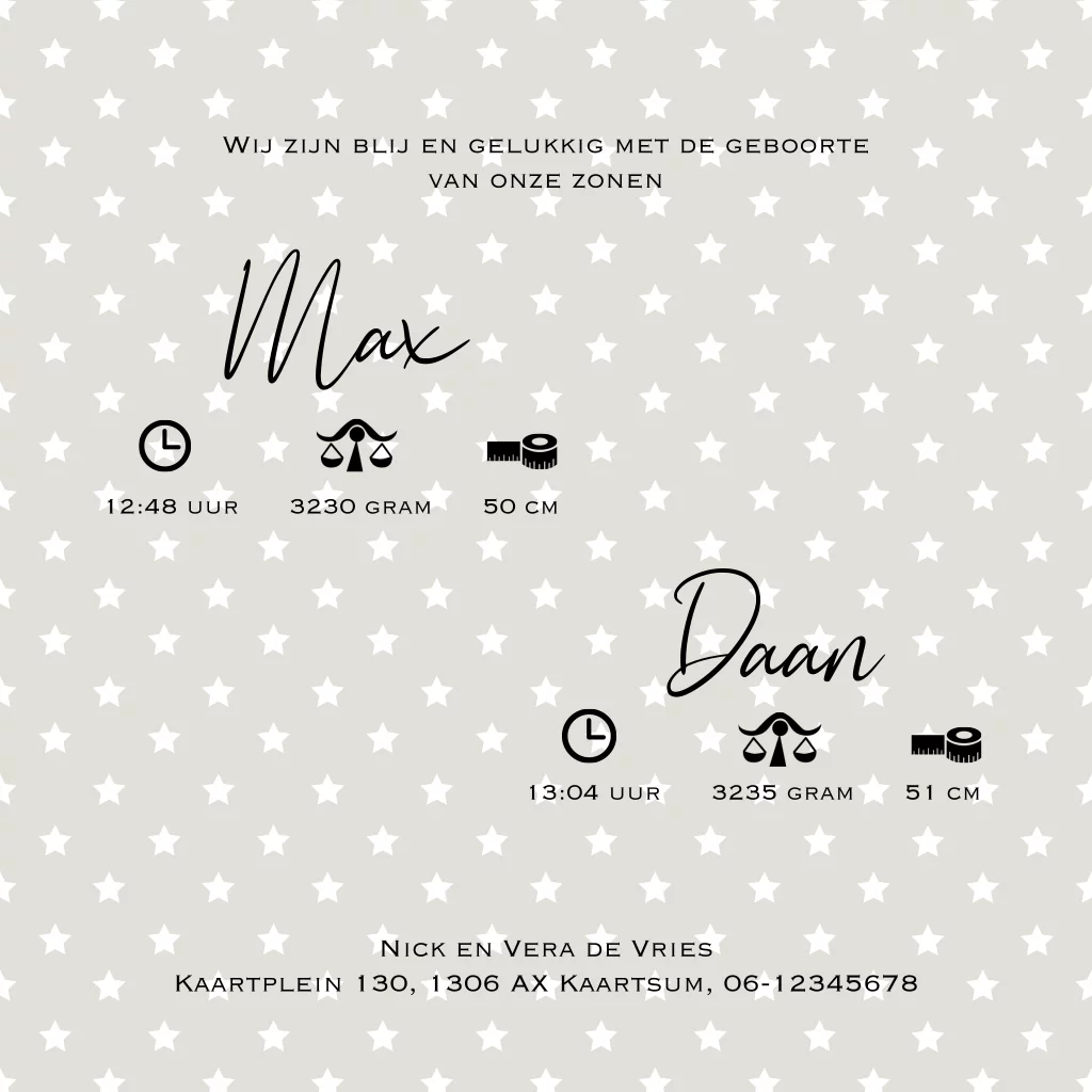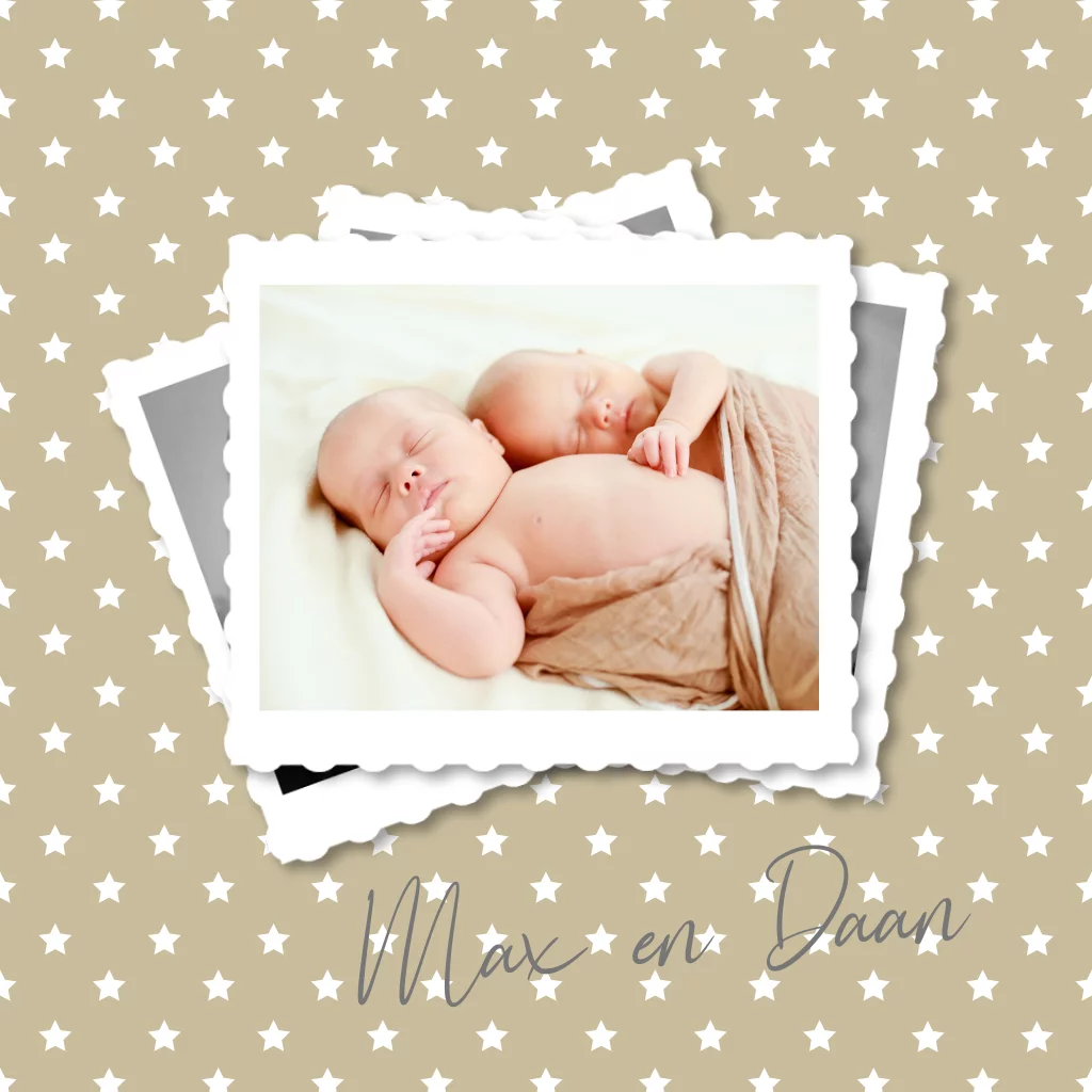 Foto babykaartje voor tweeling jongens met sterren patroon