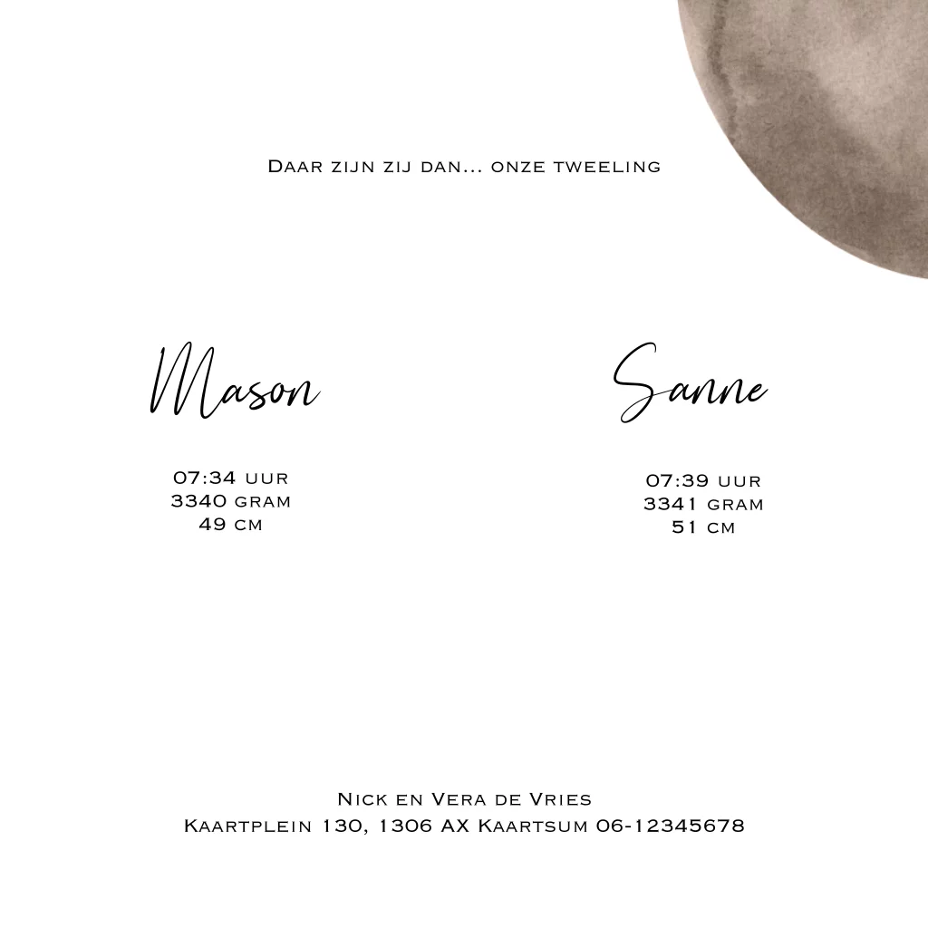 Stijlvol geboortekaartje tweeling stippen