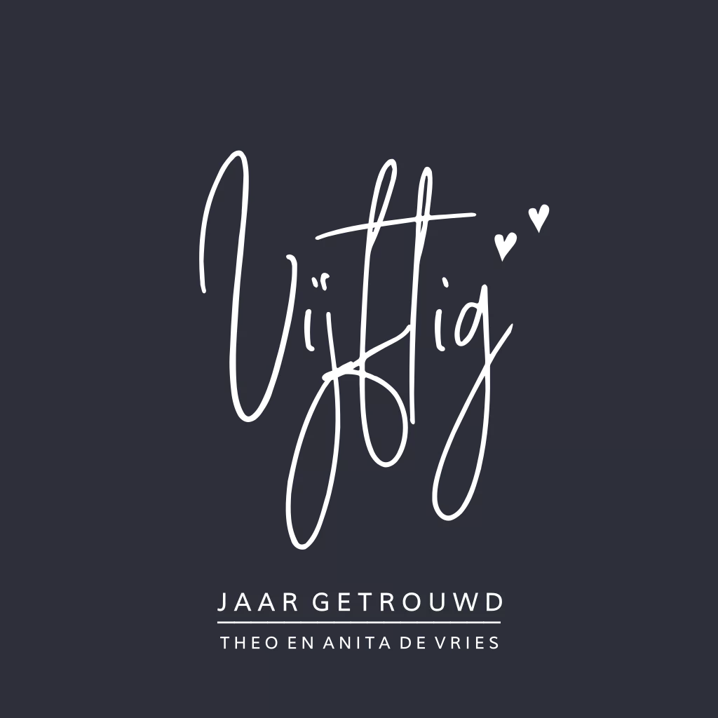 Prachtige enkele donkerblauwe 50 jaar huwelijksjubileum kaart met écht goudfolie. Alles staat los en is zelf te bewerken.