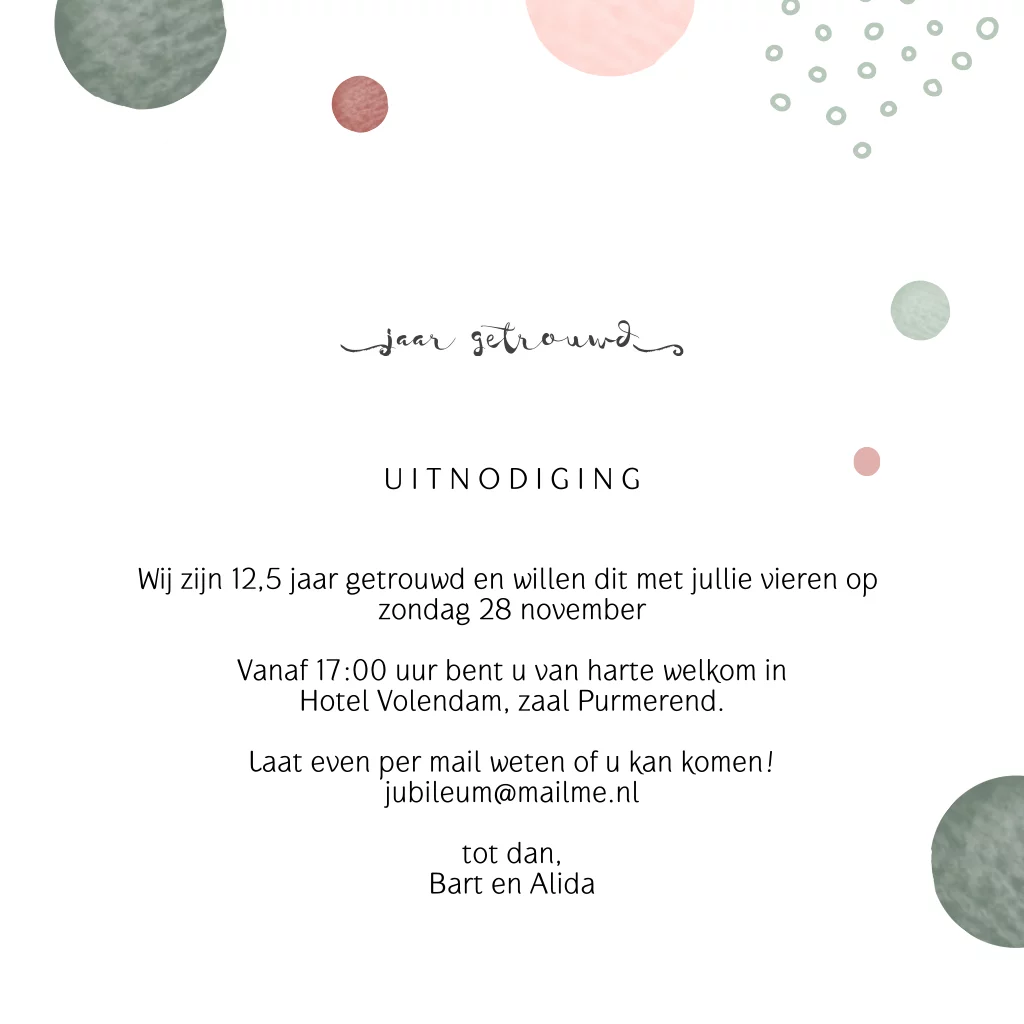 Feestelijke vierkante 12,5 jaar getrouwd uitnodiging met bubbels, confetti en champagne glazen gevuld met echt goud folie druk.