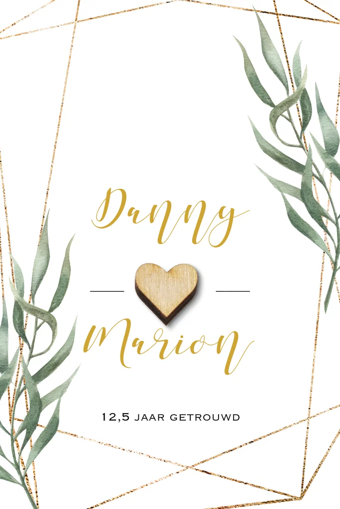 Botanische 12,5 jaar getrouwd uitnodiging écht houten hartje
