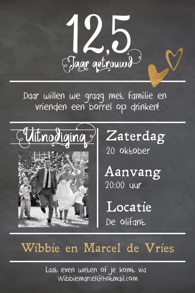Enkele foto uitnodiging 12,5 jaar getrouwd krijtbord look