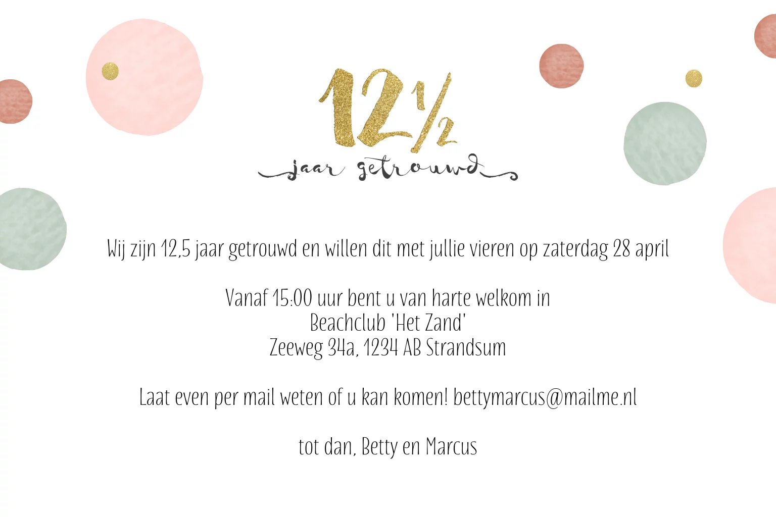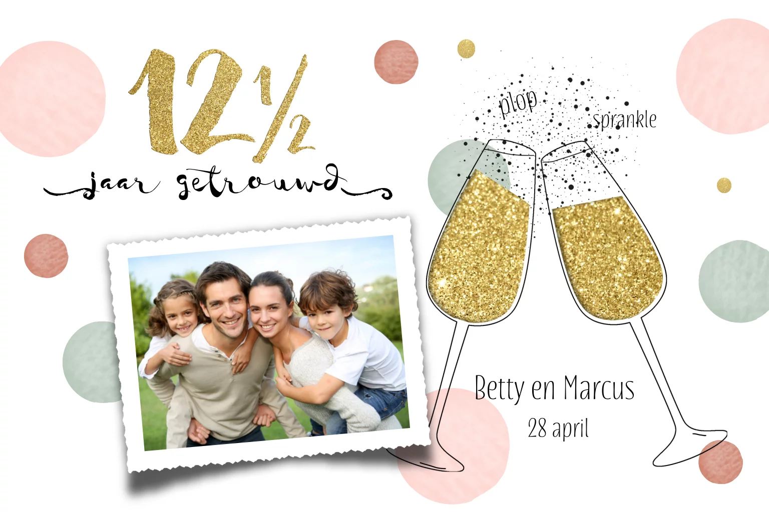 Feestelijke foto uitnodiging 12,5 jaar getrouwd