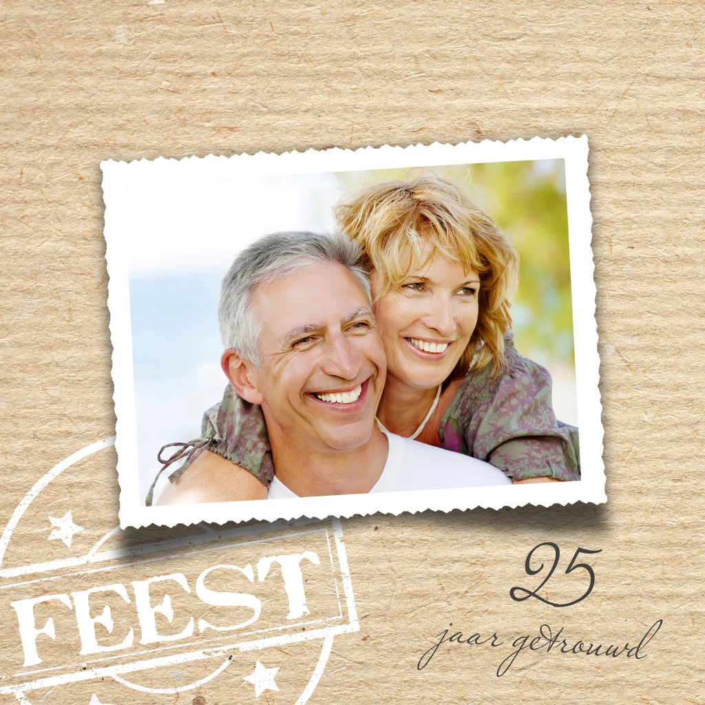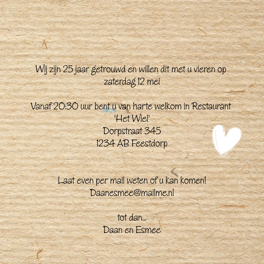 Eerdaags 25 jaar getrouwd! Deze uitnodiging met kraft look en ruimte voor 1 foto kan je eenvoudig aanpassen.