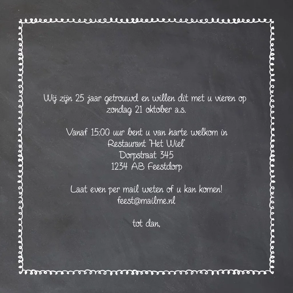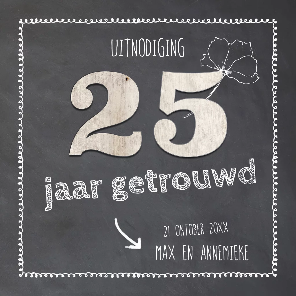 25 jaar getrouwd? Stijlvolle uitnodiging met krijtbord op de ondergrond en een 25. Zelf maken!