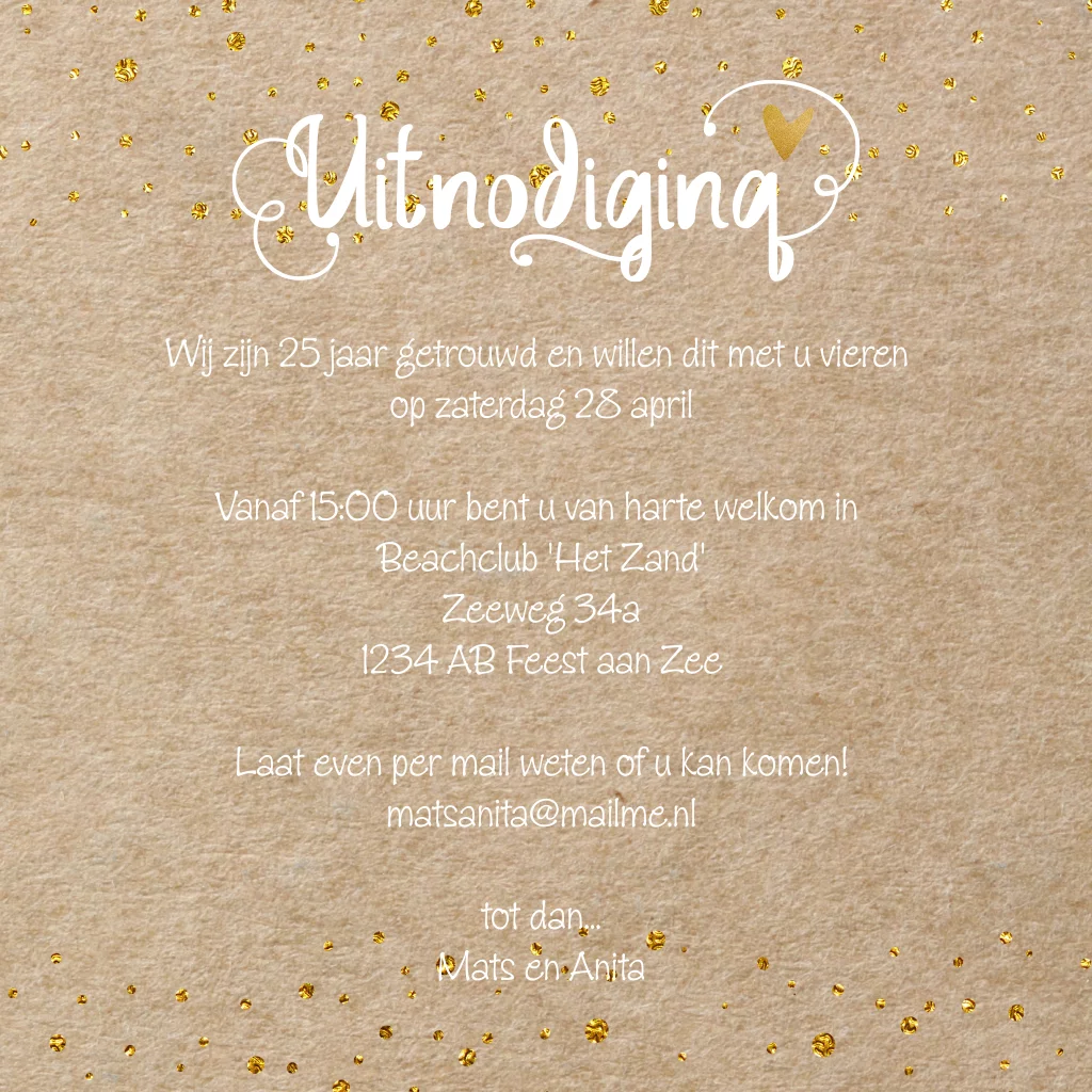 Eerdaags jullie 25 jarig huwelijks jubileum feest geven? Mooie uitnodiging met goud look (geen echt goud inkt) kraft print, confetti en hand lettering.