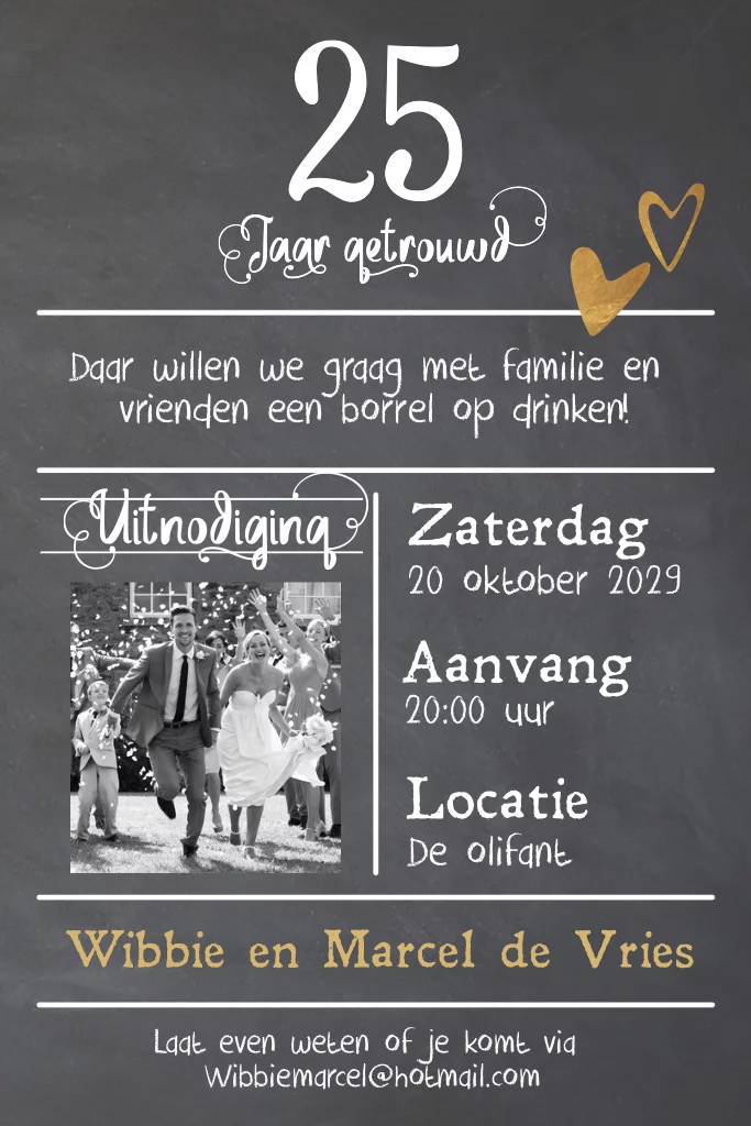 Dubbel foto uitnodiging 25 jaar getrouwd krijtbord look