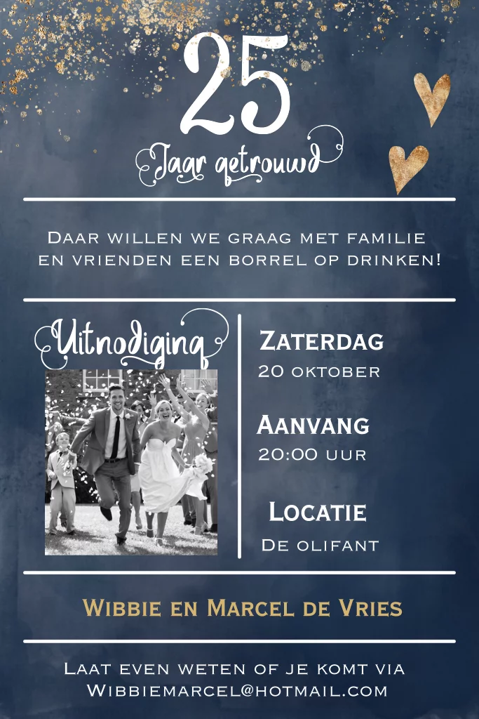 Enkele foto uitnodiging 25 jaar getrouwd navy blue