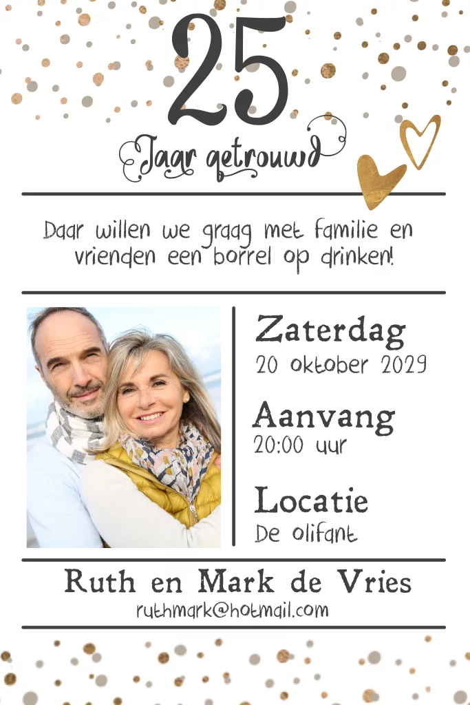 Enkele confetti uitnodiging 25 jaar getrouwd