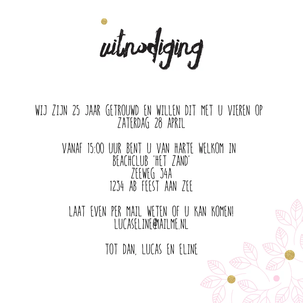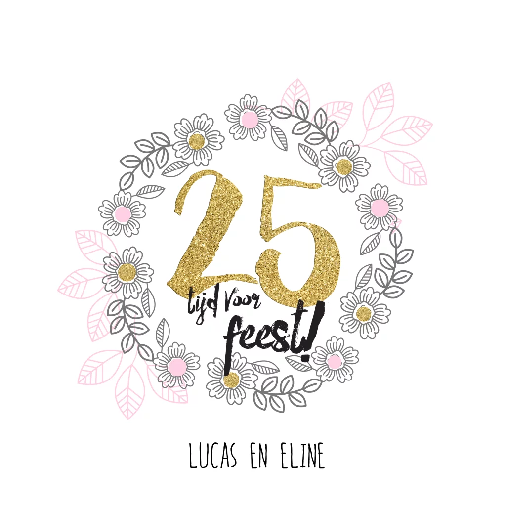 Eerdaags jullie 25 jarig huwelijks jubileum feest geven? Uniek uitnodiging met een sierlijke bohemian krans met goud achtige confetti en hippe hand lettering.
