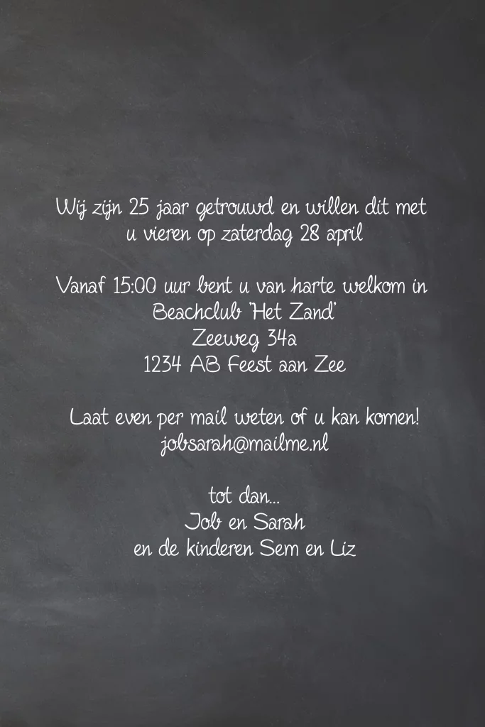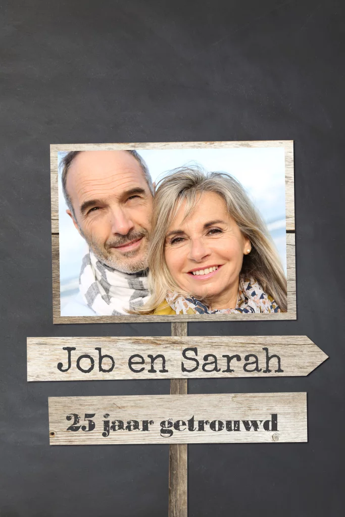 Foto 25 jaar getrouwd kaart met hout pijlen en krijtbord look
