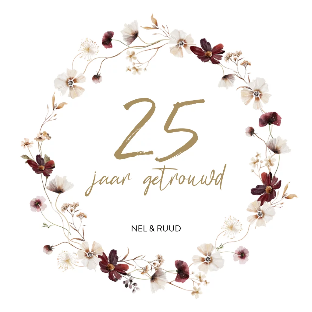 Uitnodiging 25 jaar getrouwd aquarel veld bloemen