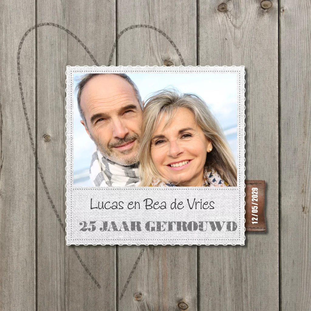 Hippe Foto Huwelijksjubileum kaart met Hout en Linnen