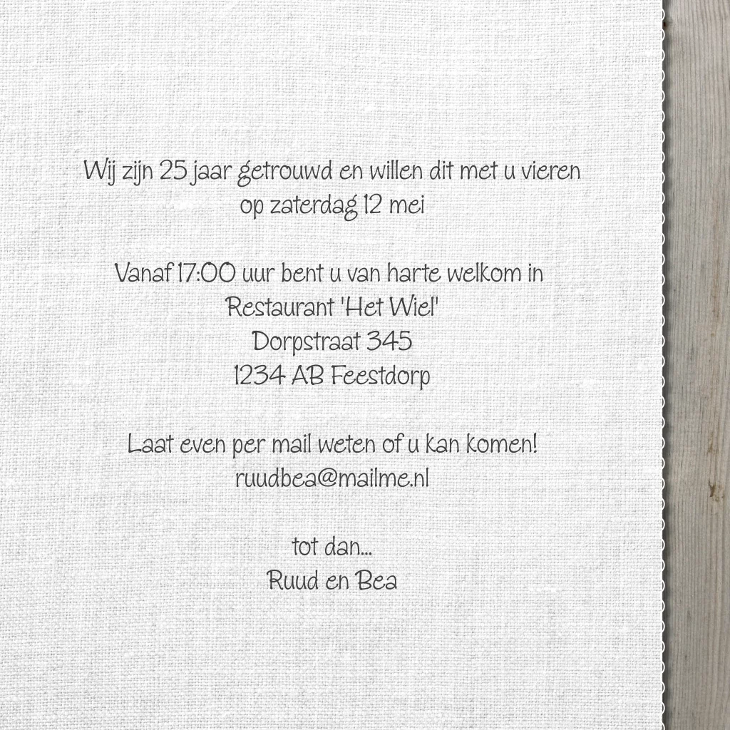 Mooie huwelijksjubileum uitnodigingen kaart met hout en linnen. Pas eenvoudig je eigen tekst toe en vervang de foto!