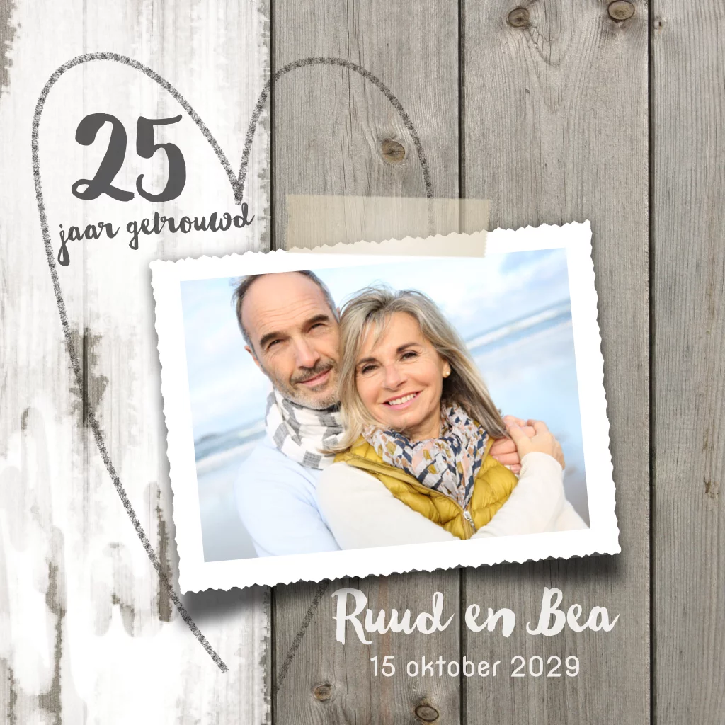 Unieke foto 25 jarig huwelijks jubileumkaart hout