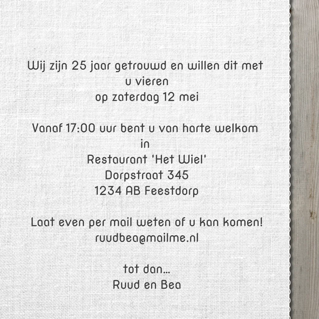 Eerdaags 25 jaar getrouwd? Originele uitnodiging voor jullie huwelijksfeest met hout look en verf streep, foto kader zelf maken.