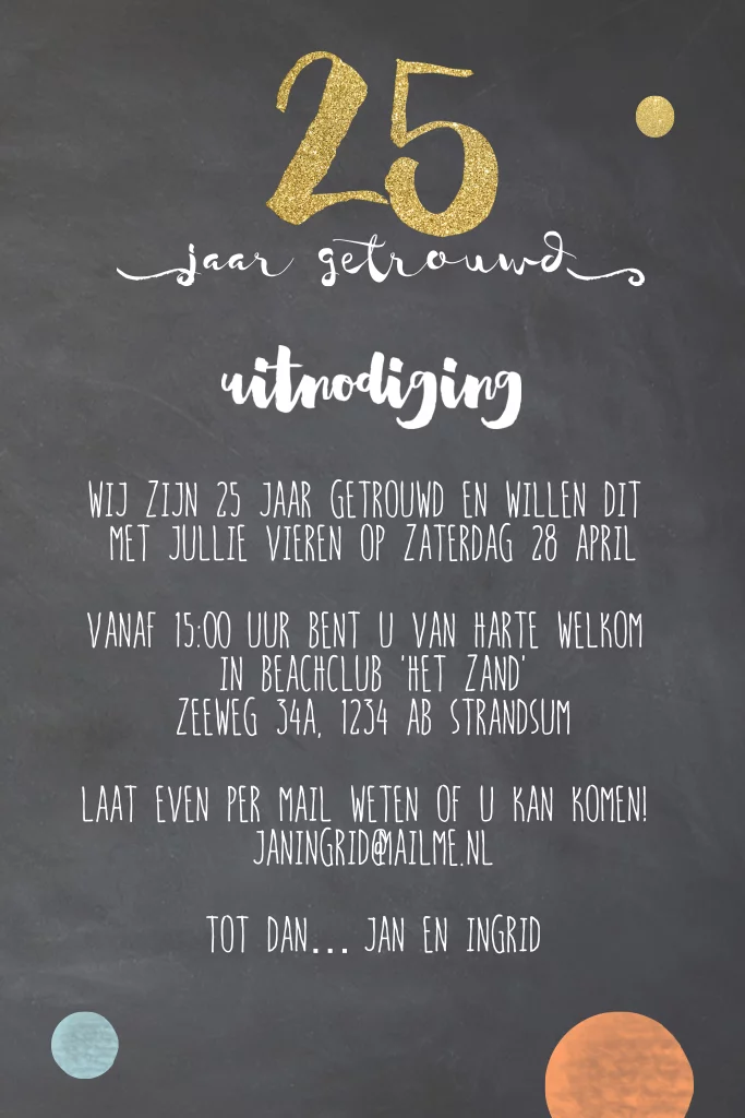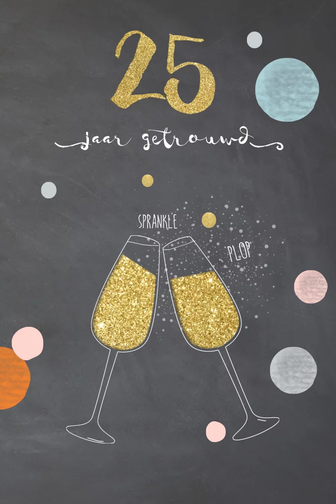 Krijtbord uitnodiging 25 jaar getrouwd champagne glazen
