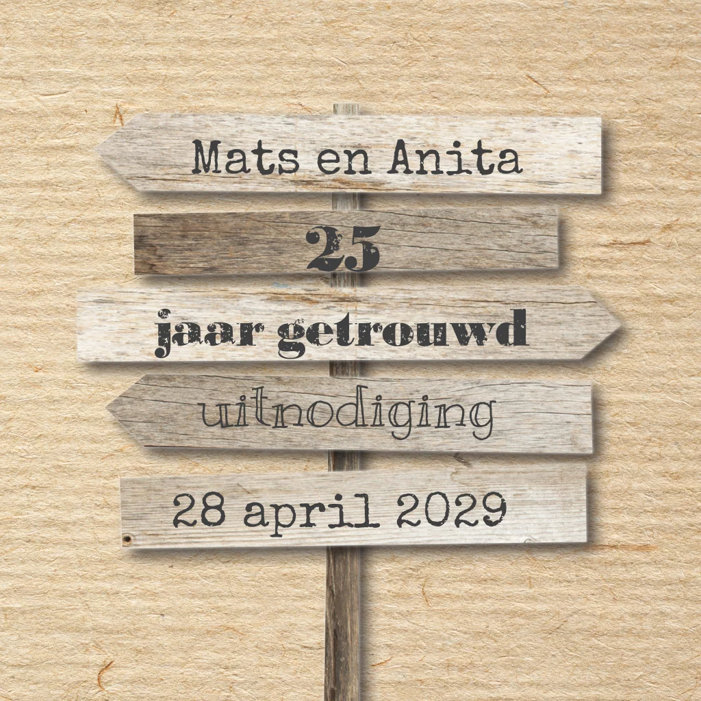 Uitnodiging 25 jaar huwelijk met kraft en wegwijsborden