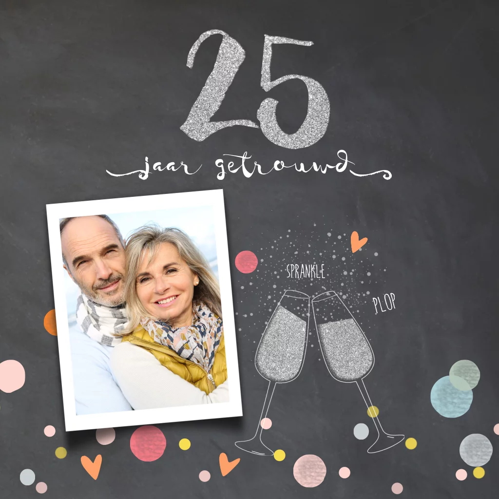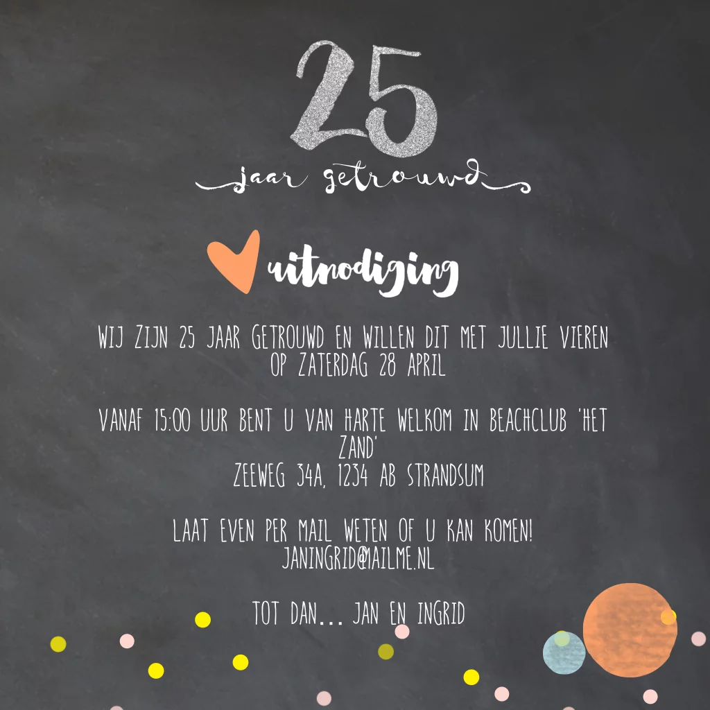 Krijtbord uitnodiging 25 jaar getrouwd zilver champagne