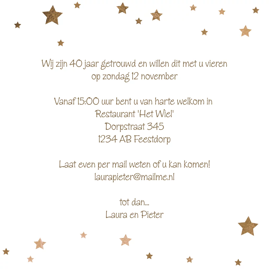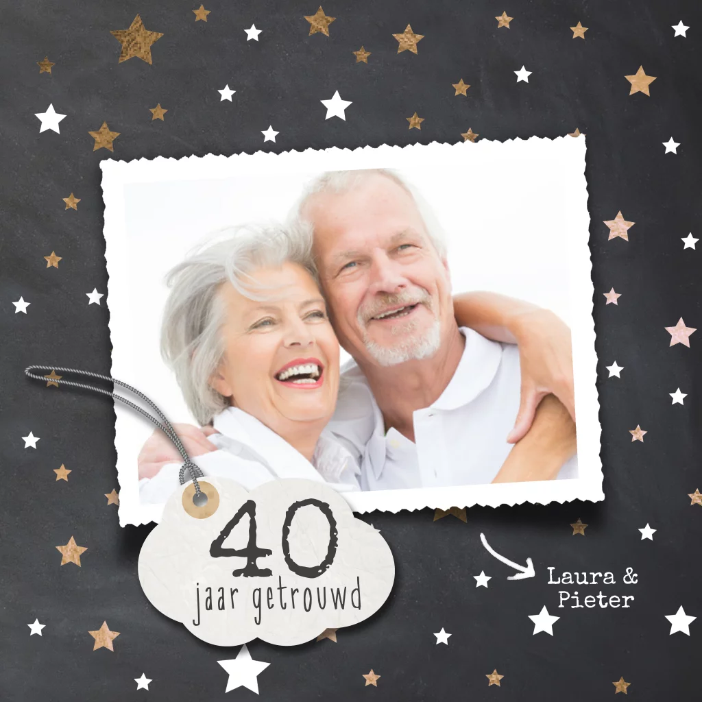 40 jaar getrouwd uitnodiging met kopere sterren en foto kader