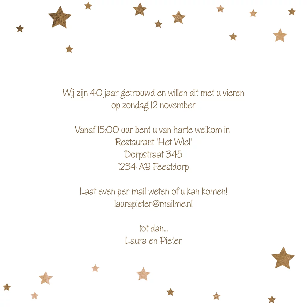 40 jaar getrouwd uitnodiging met sterren en koper look