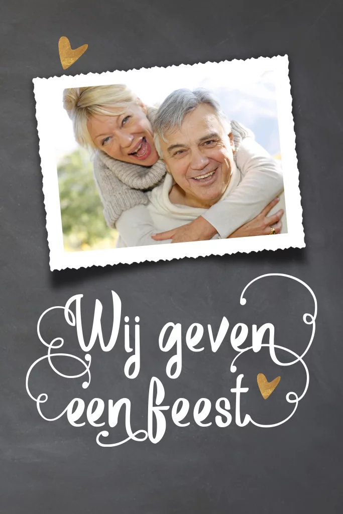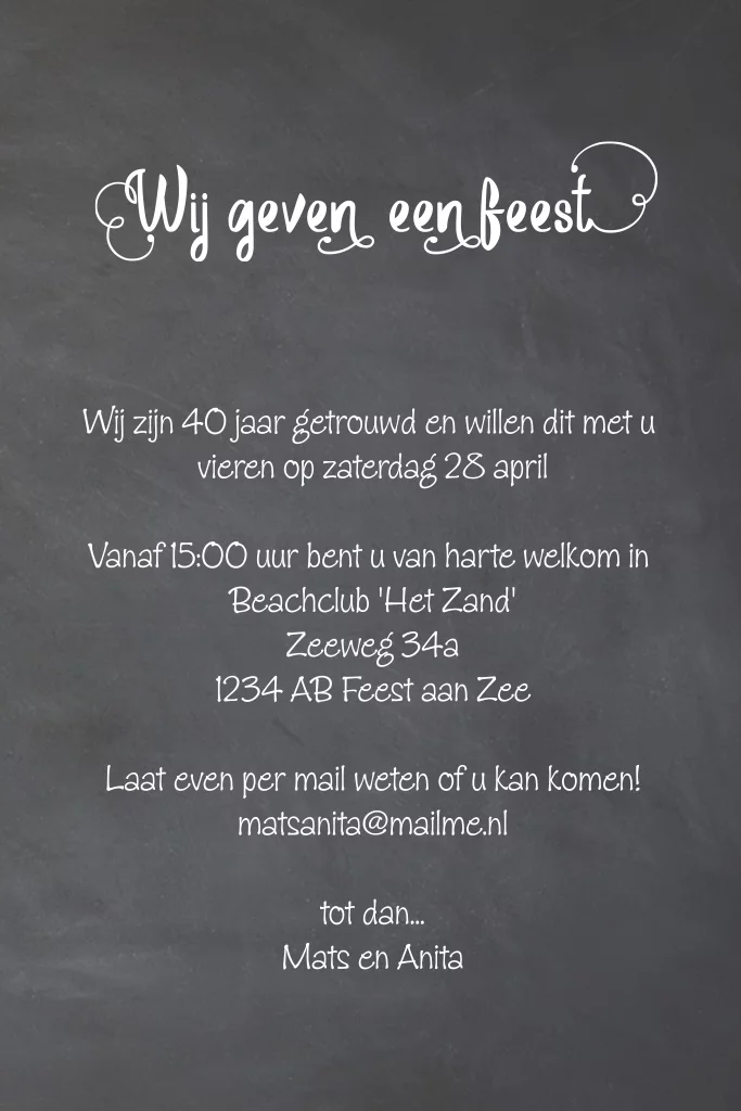 Eerdaags jullie 40 jarig huwelijks jubileum feest geven? Mooie uitnodiging met foto kader, krijtbord print en hand lettering.